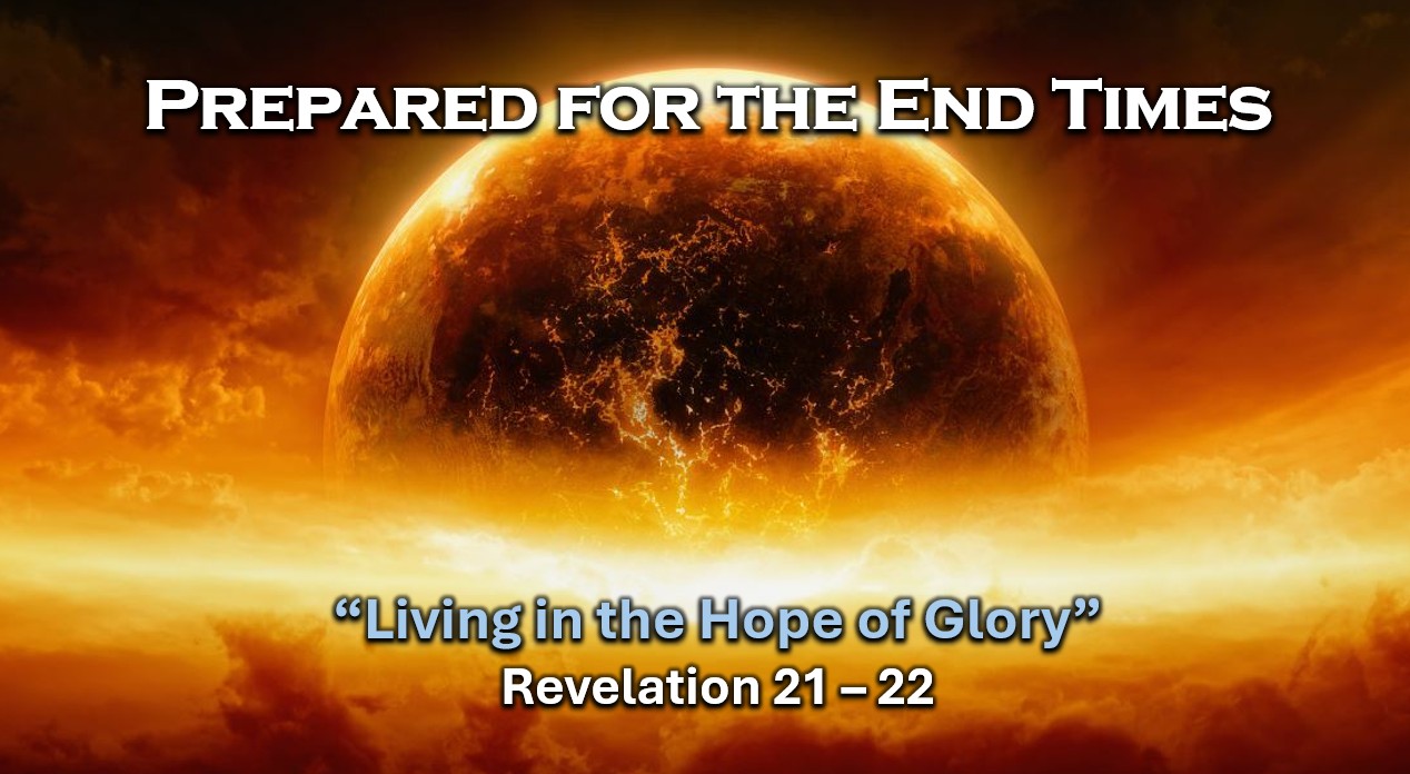 Join us this Sunday for our final message in our series, Prepared for the End Times, with our message, "Living in the Hope of Glory," based on Revelation 21-22. The other Scripture readings are from Isaiah 65:17-25; Luke 12:35-40.
