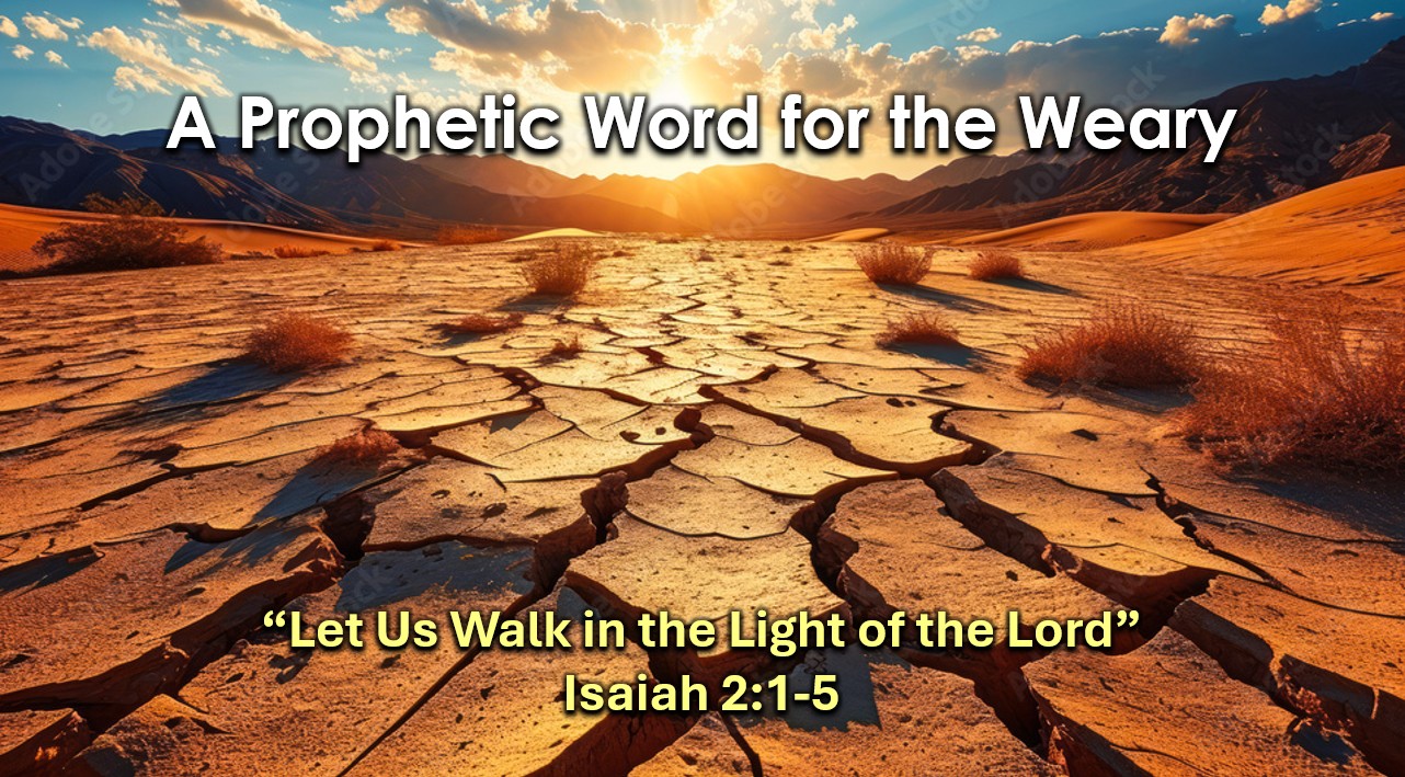 Join us on this First Sunday in Advent as we begin our new series, A Prophetic Word for the Weary, with the message, "Let Us Walk in the Light of the Lord," based on Isaiah 2:1-5. The other Scripture readings are from Romans 13:8-14 and Matthew 24:36-44.